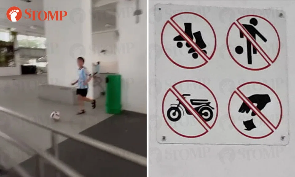 Yishun resident kicks up concern over kids ignoring 'no football' signs at void deck