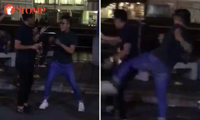Two men were caught on video fighting at what looks to be Clarke Quay.