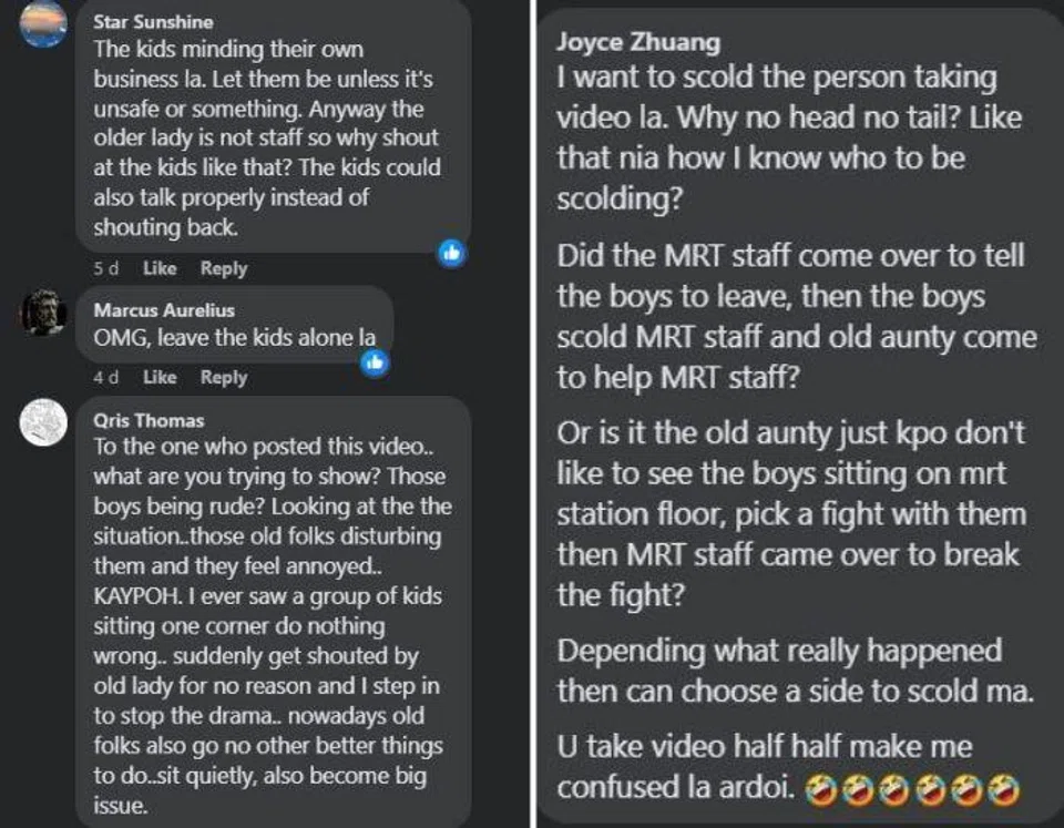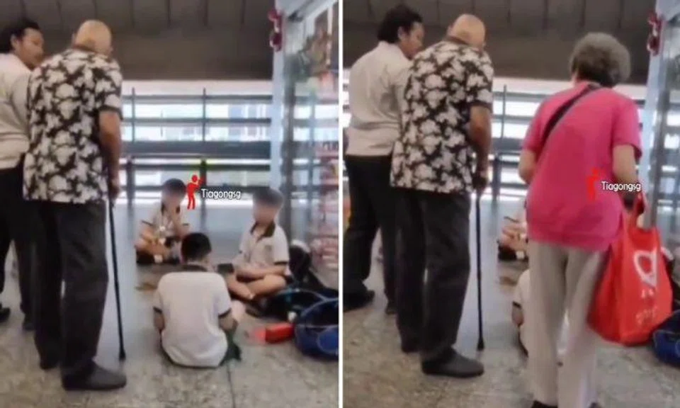 Netizen are divided by a viral video showing three schoolboys sitting on the floor in front of a 7-Eleven outlet at an MRT station speaking with several adults including a station staff member.