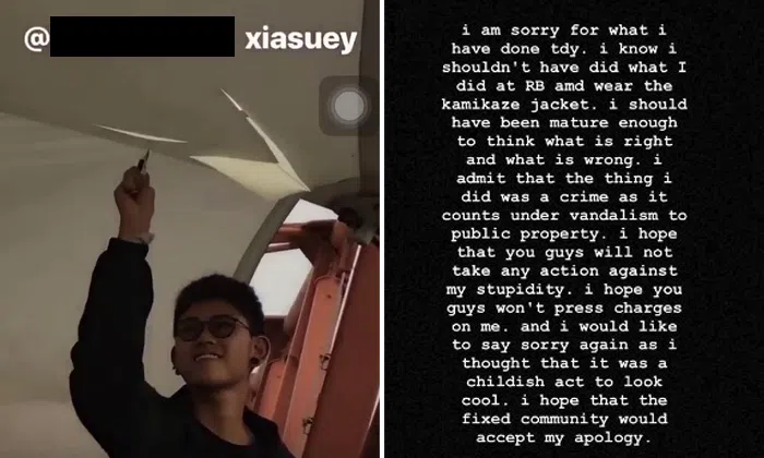 Acknowledging his actions as vandalism of public property, the youth apologised and said: "I am sorry for what I have done tdy (sic)."