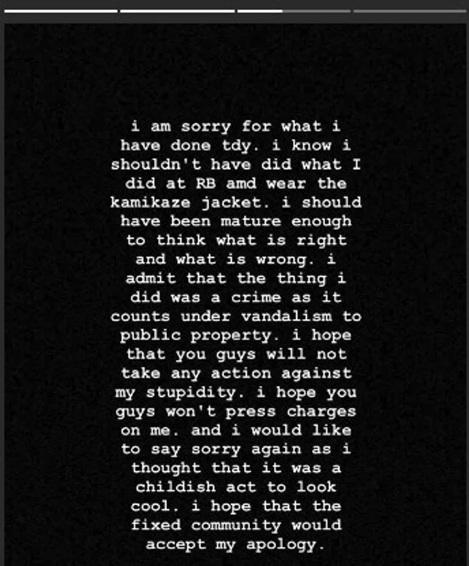 The boy also said he hoped that action would not be taken against his "stupidity" and appealed for people to accept his apology.