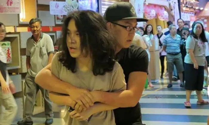 Before he could ask Amos to delete the video, Amos left the shop. Loke stopped him and held the teen's hands while Amos tried to break free, shouting "Help me! Help me!" repeatedly.
