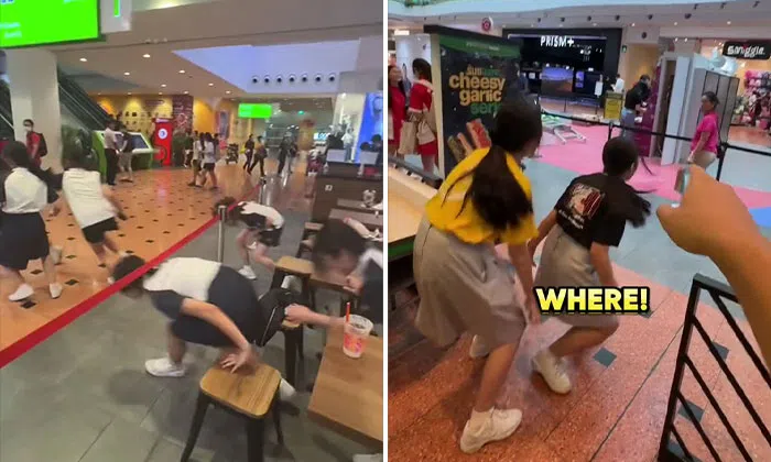 In one of the clips, a group of schoolgirls are seen running out from an eatery after Runner Kao shouts 'Your cher (teacher)!'