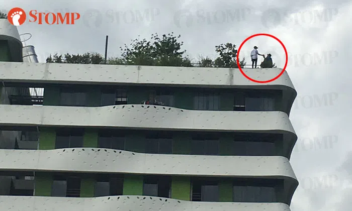 A Stomper was cycling near Punggol MRT Station yesterday (Jan 21) when she noticed two figures standing precariously close to the edge on the roof of a building nearby.