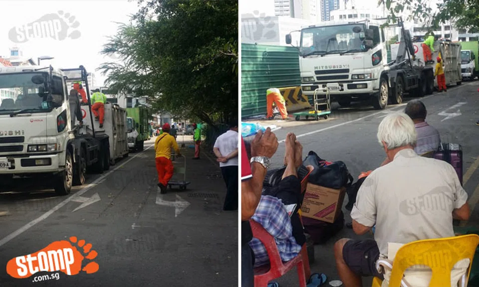 As seen in the pictures, there were a few elderly men seated on plastic chairs in front of the road -- according to the Stomper they were previously sellers in the market.