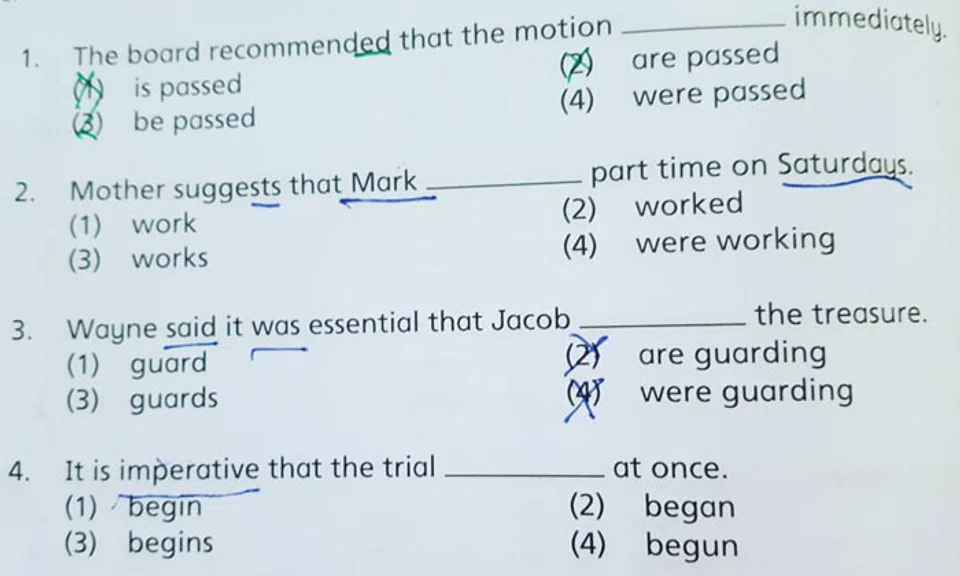 At first glance, most people would choose option (3) for all three questions but in fact, the answer is option (1) for all of them.