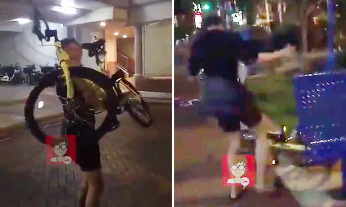 Police report made after idiot seen throwing and stepping on ofo bicycle