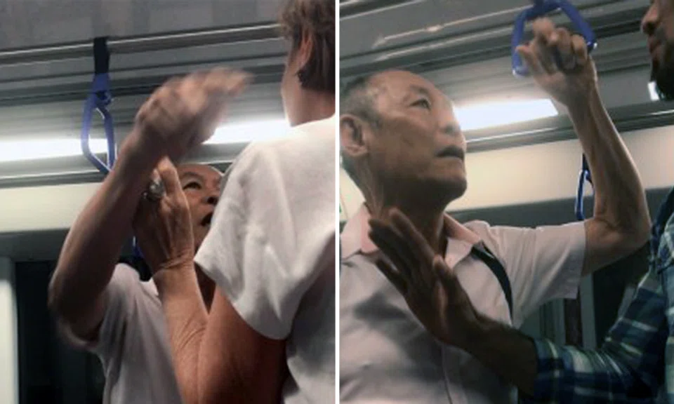 An elderly man was caught on video sexually harassing and slapping a man on an MRT train recently, until other commuters stepped in to stop him.