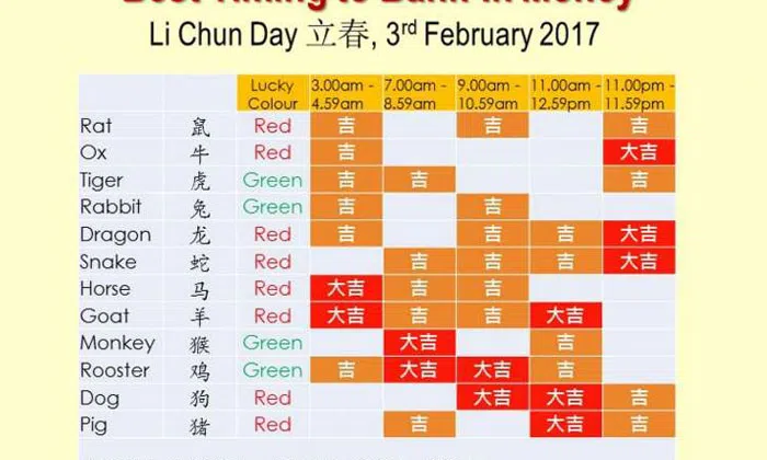 In what has become the norm in recent years, a fengshui expert has released a timetable detailing the ideal times for people to bank in their money on the auspicious day of Li Chun.