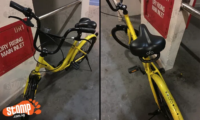 After riding the bicycle home, he left it at the void deck and immediately informed ofo on Facebook message of the tampered bicycle.