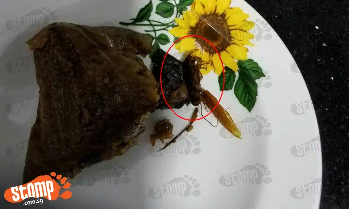 Stomper Carmen and her mother were disgusted to find a cockroach inside a rice dumpling that they had purchased from a stall in Hougang Mall.