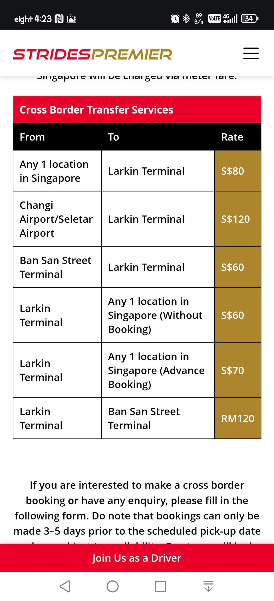 Meanwhile, the official Strides fare from Larkin to Ban San Street is RM120 (S$38) per taxi – or RM30 (around S$9.50) per pax – according to Sam.