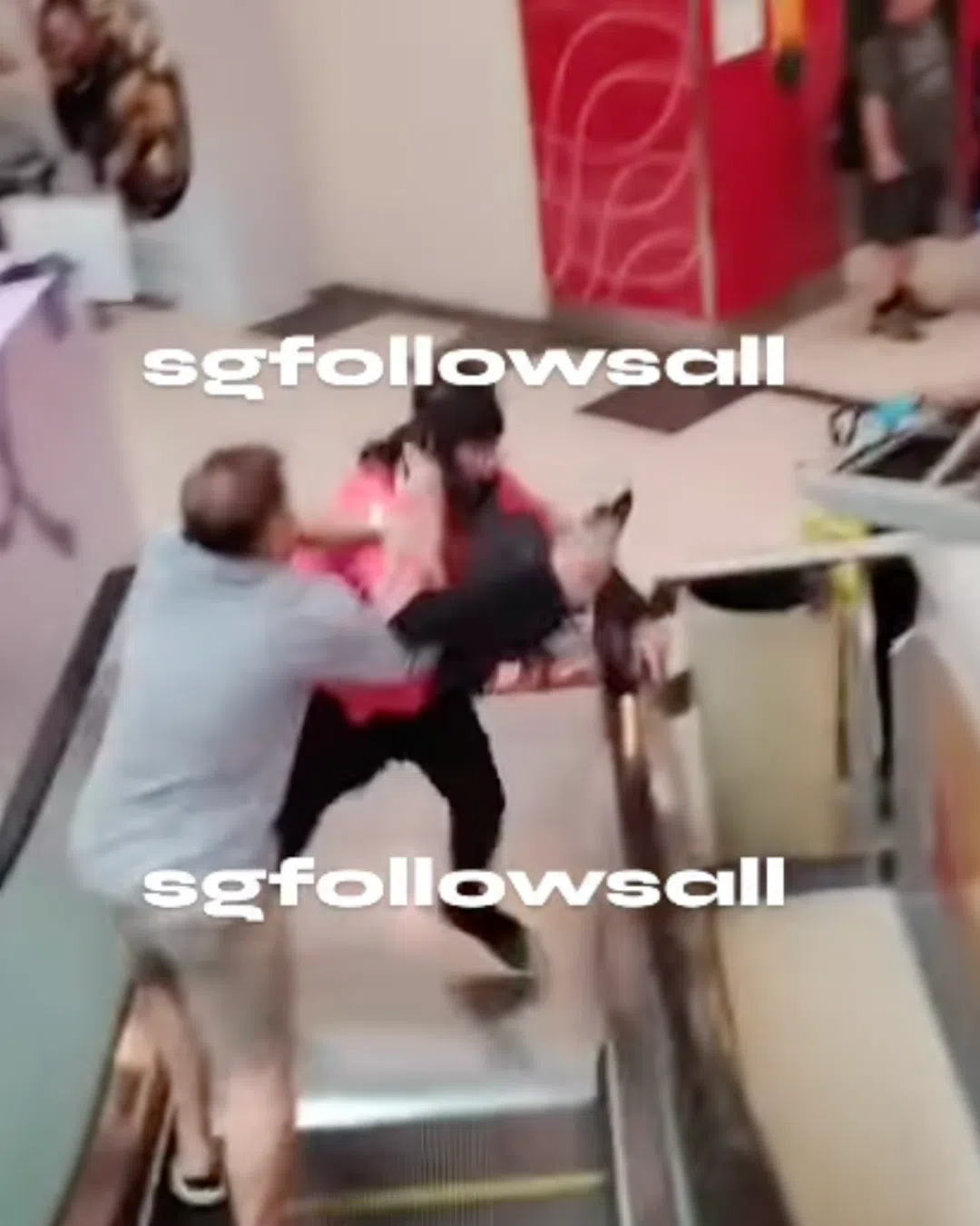 Two men were seen wrestling each other outside a Hougang coffee shop.