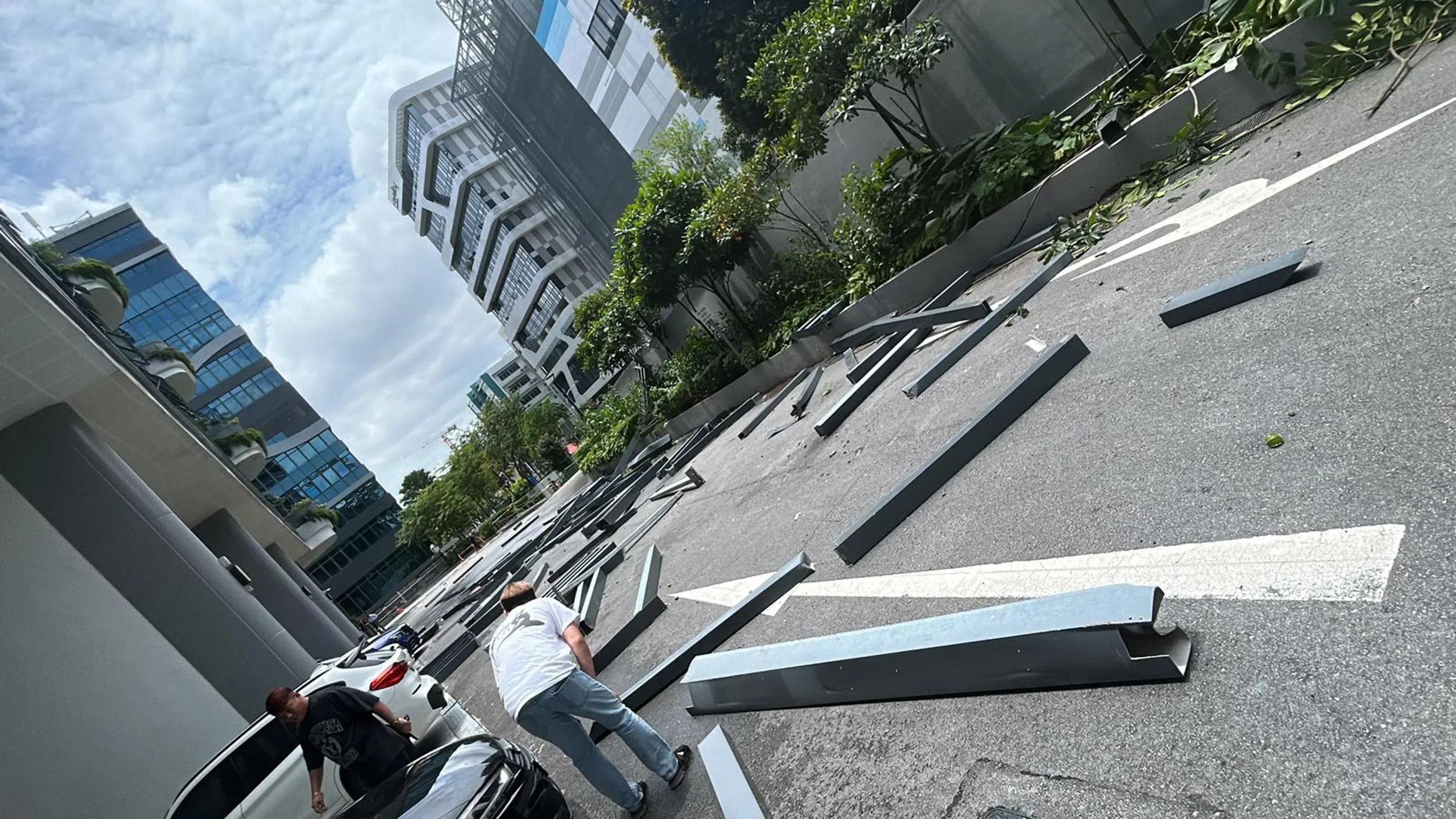 A 27m-long external structure fell off a building in the Bartley area and crashed onto the street below on March 11, narrowly missing an employee from a store on the ground floor.