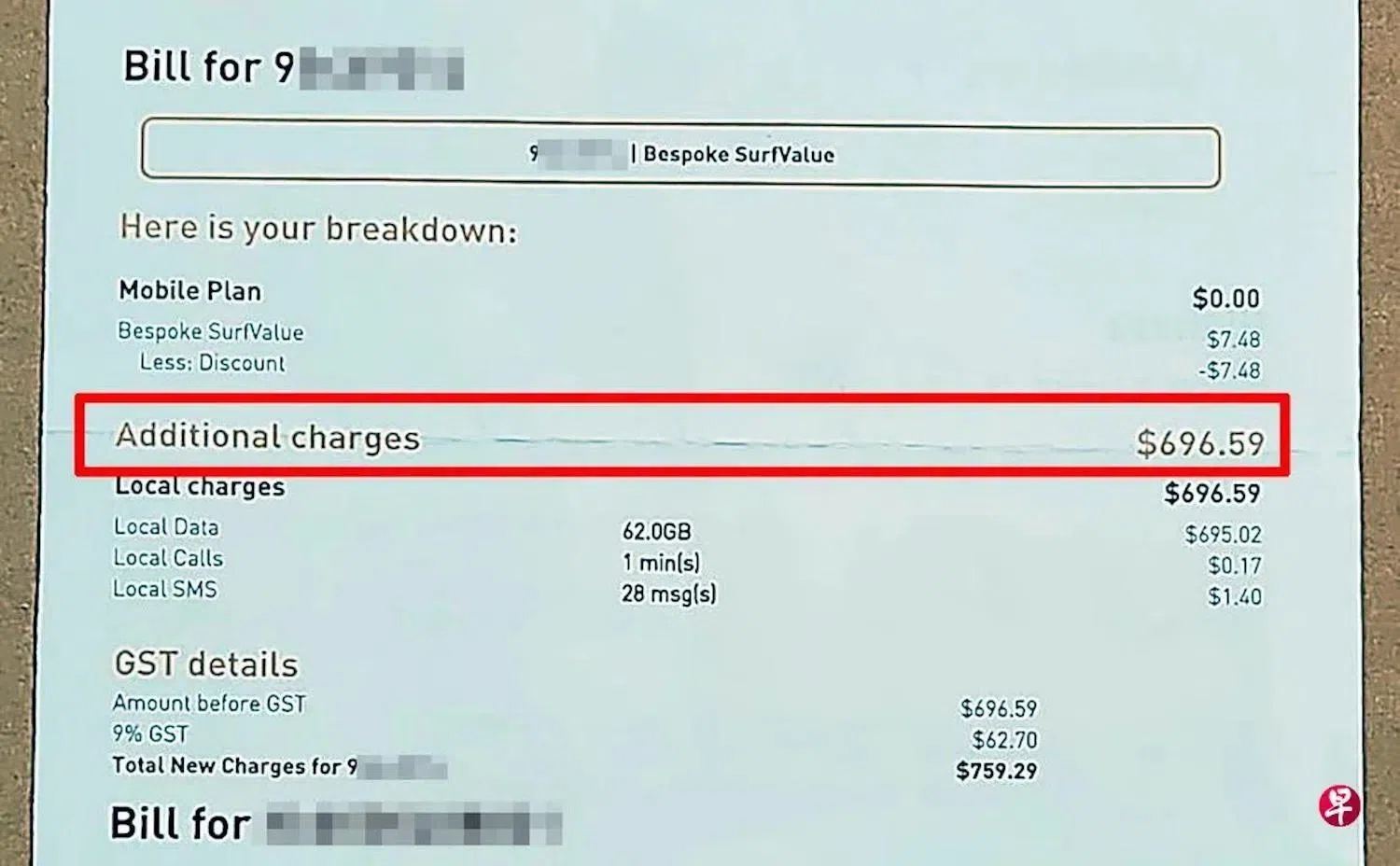 In her January bill this year, Ms Zheng's mother received a bill showing that the discarded SIM card had used up 68GB worth of data, incurring a bill of $695.