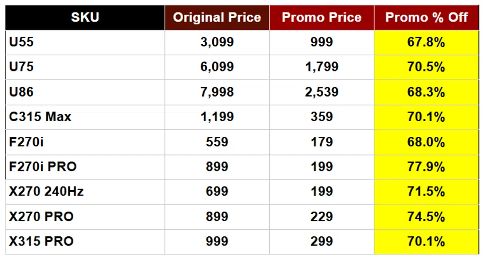 The company also shared a "discount table" listing the original and promo prices of nine TV sets and computer monitors.