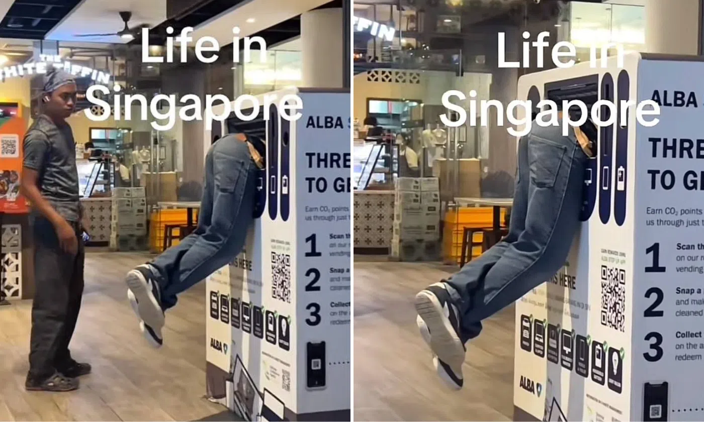 The incident was captured by a customer queuing for a free 5G SIM card replacement, who saw the man climb into the bin. It is unclear what he took from the bin.