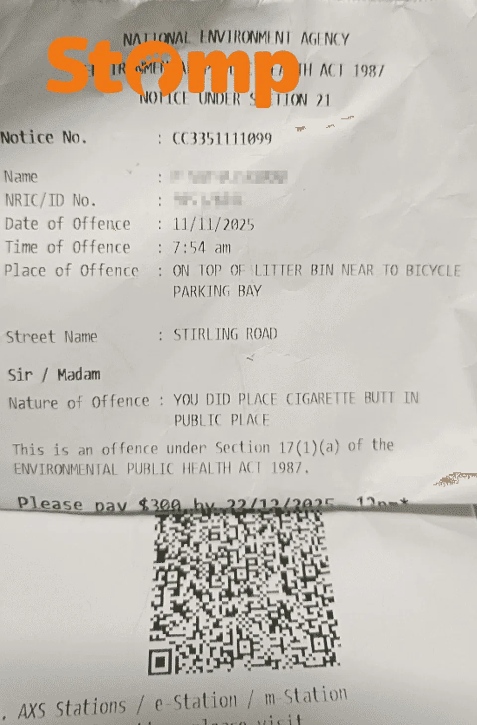 "I thought it was normal to leave the butt on top of the dustbin to avoid a fire, but I’m shocked to know that I was wrong," he told Stomp, adding that he has submitted an appeal against the fine.
