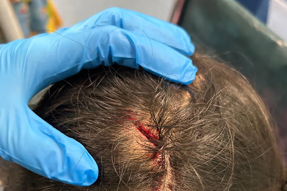 However, to her surprise, blood suddenly started flowing down from her daughter's head to her face and clothes.