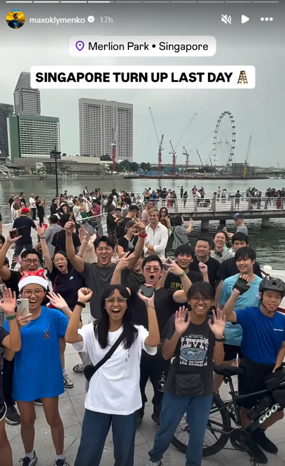 Max Klymenko, popularly known as the career ladder guy, shared on Instagram the locations he planned to visit in Singapore - including Chinatown, the Buddha Tooth Relic Temple, and Merlion Park.