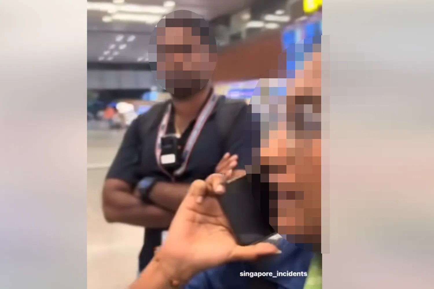 In response to queries from TNP, NEA confirmed that the incident took place on Aug 13 at Changi Airport and was captured on the officers' body-worn cameras.