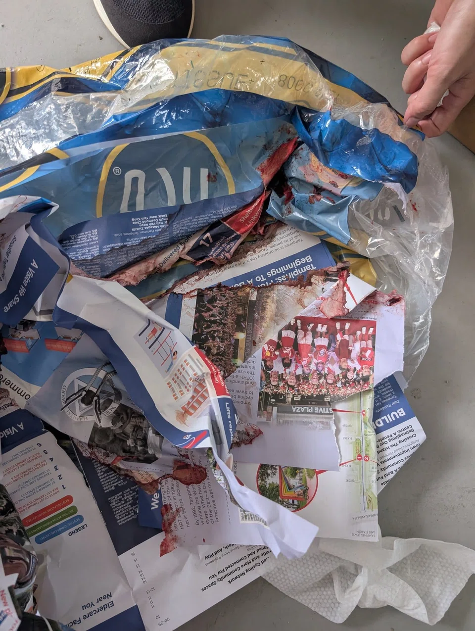 A white latex glove was also found among the mess.