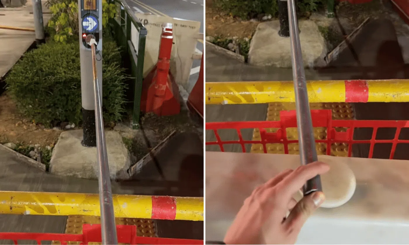 'Engineering-level improvisation': Rigged pole lets pedestrians press traffic light button despite barriers
