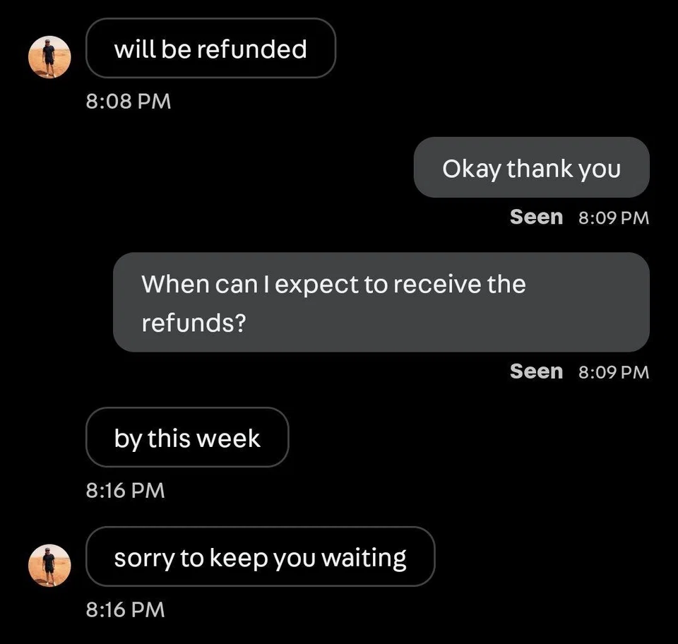 He eventually asked for a refund, adding that by then, Kwek no longer initiated any conversations.