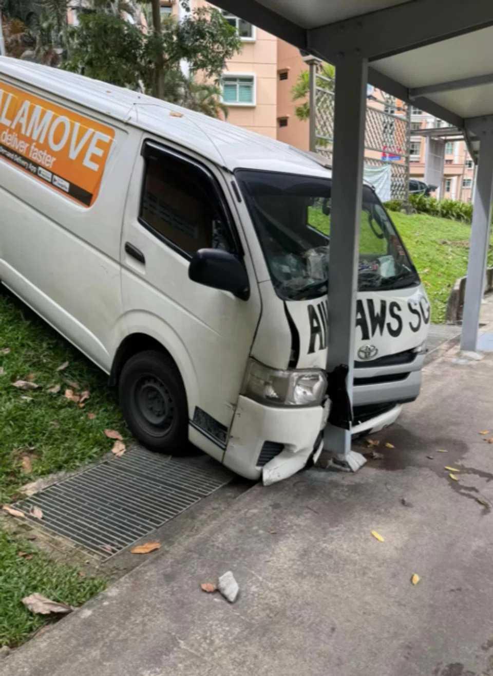 A TikTok post of a Lalamove van that crashed into a pole at a sheltered walkway in Punggol has gone viral.