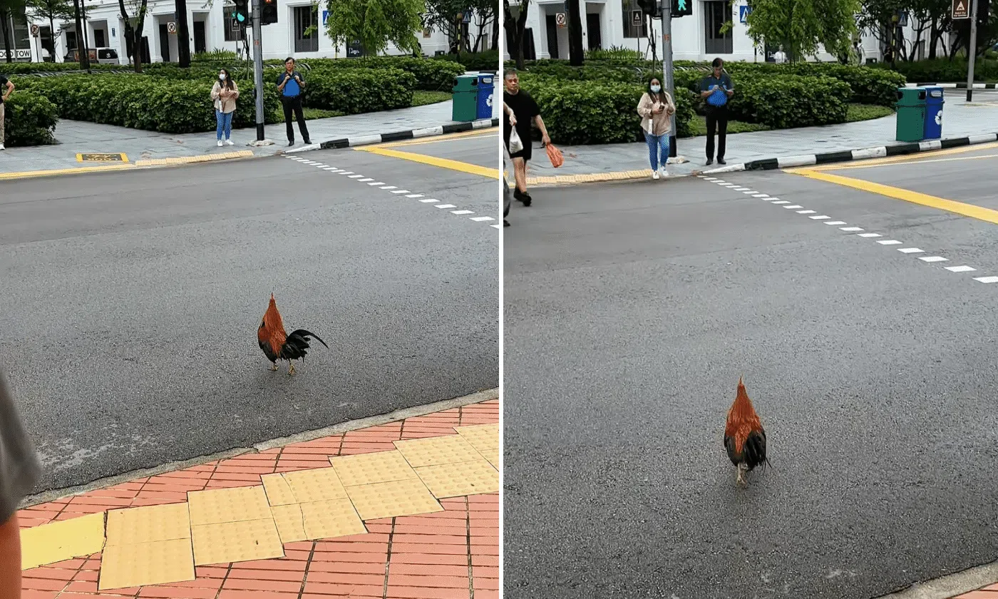 A TikTok clip of a rooster waiting for the traffic lights to turn in its favour before crossing the road at a pedestrian crossing has amused netizens, with one quipping: "A true blue Singaporean chicken. [sic] must follow rules n [sic] regulations."