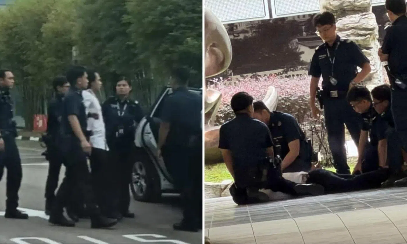 According to Chinese-language daily Lianhe Zaobao, the man had gone to the school to find a teacher, and after he refused to leave, the police were informed.