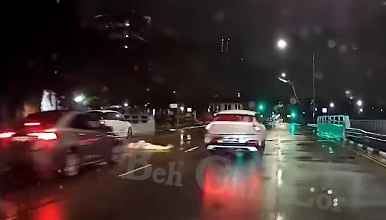 In video footage put up on Facebook page Beh Chia Lor – Singapore Road on Oct 5, a car can be seen coming to a sudden halt even though the traffic light was green because the man was lying flat across one of the road’s four lanes.