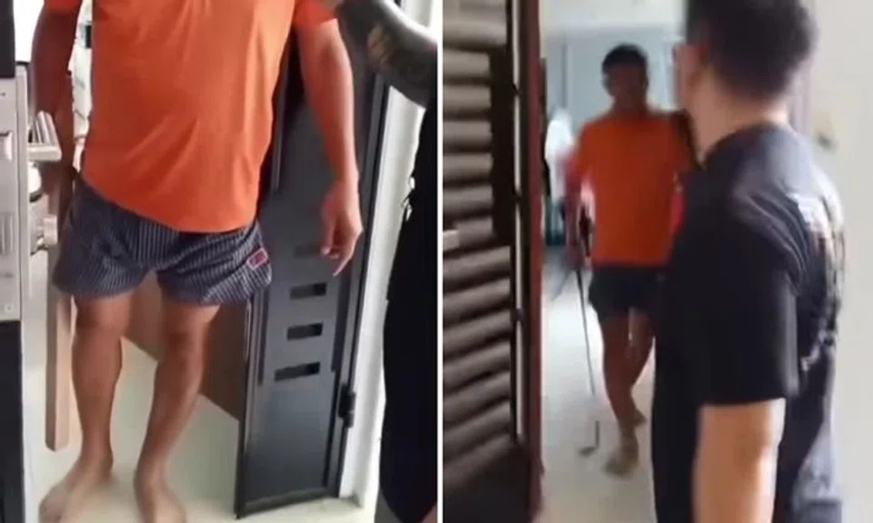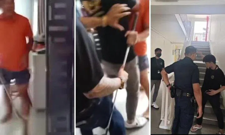 A man was arrested after allegedly attacking debt collectors with a wooden stick and a golf club outside his Tampines flat on July 10.