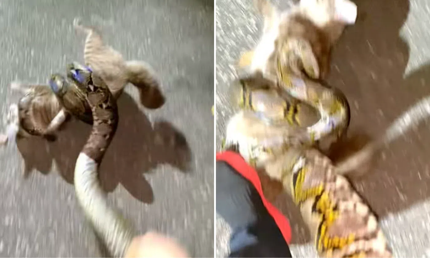 Man grabs python’s tail, swings it to free cat from deadly grip