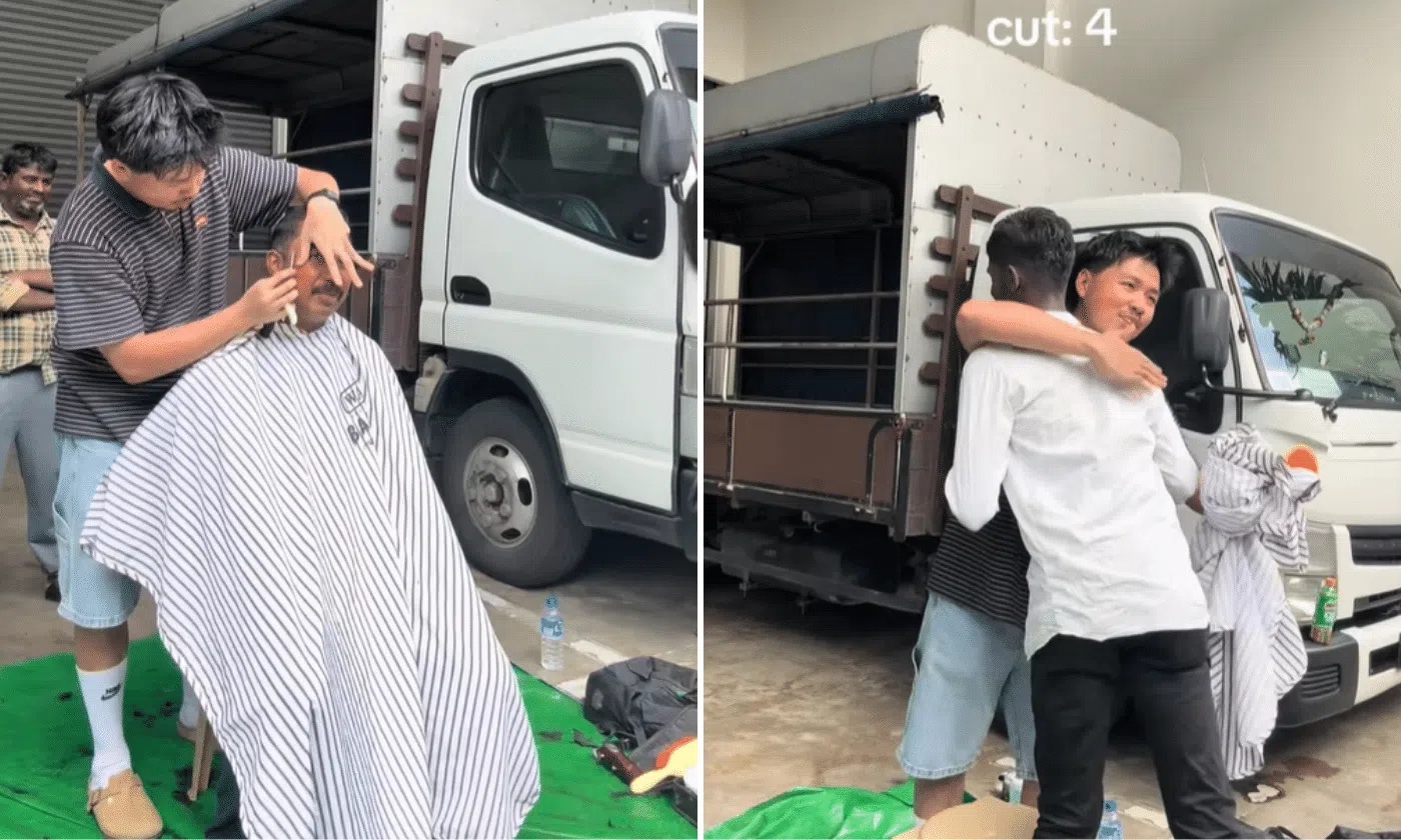 A man who gave free haircuts to 10 foreign workers has left netizens inspired and moved, as a TikTok clip of the incident went viral.