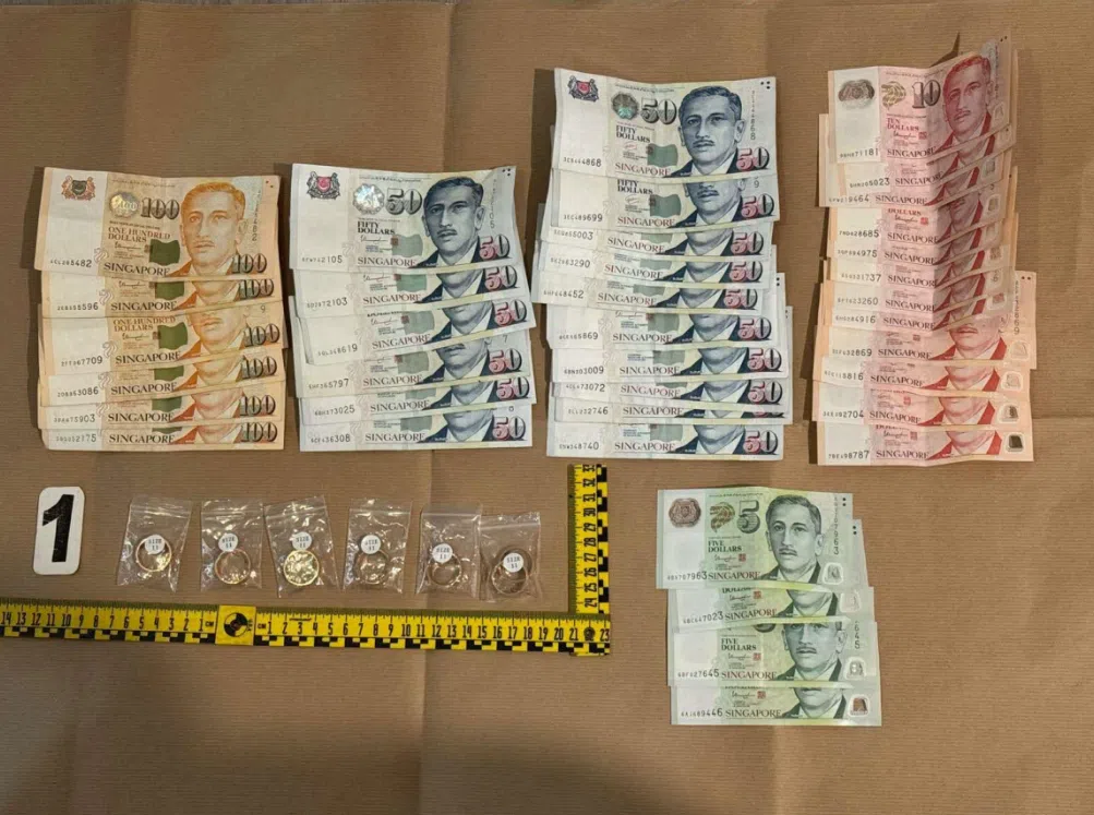 A total of 15 identical counterfeit gold rings, cash amounting to $1,578, and mobile phones containing fabricated transaction receipts were seized.