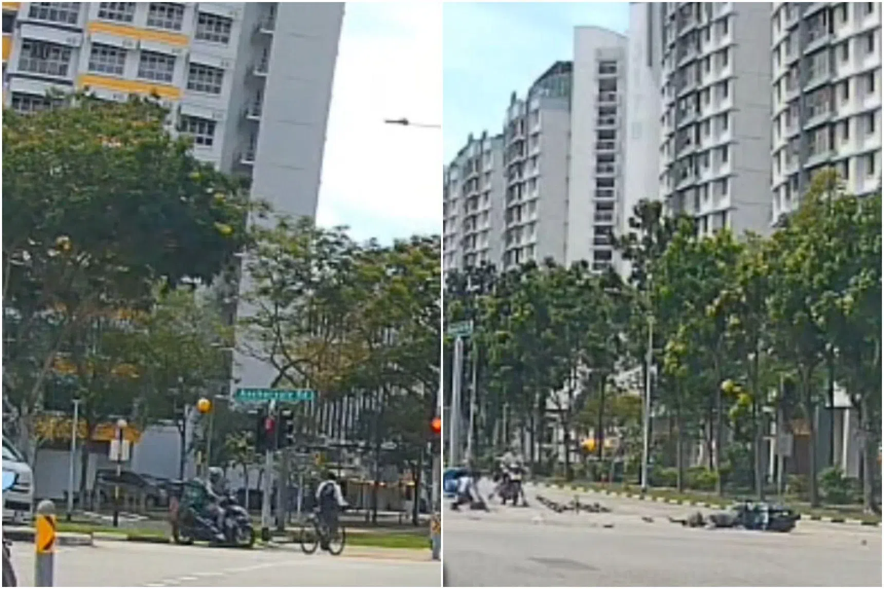 Footage of the crash, which happened at around 12.35pm at the junction of Anchorvale Road and Sengkang East Way, shows the teen riding his bicycle across the road. He appears to be going against the traffic light, which is red.