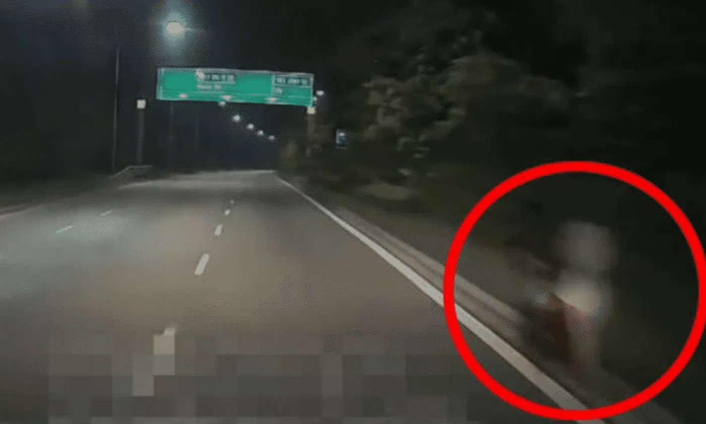 The footage, taken at about 2.30am, shows a car travelling along the KJE towards the Bukit Timah Expressway (BKE), near the Choa Chu Kang exit, when the woman suddenly comes into frame along the right-hand road shoulder.
