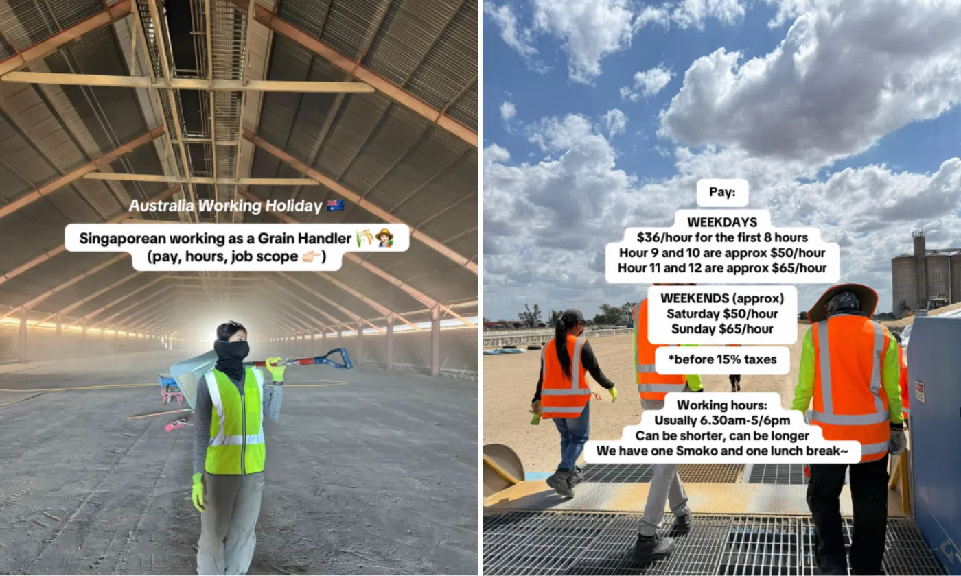 "The roof of the shed was pretty high and my legs were lowkey [sic] shaking while I was working," the 30-year-old told Stomp, recalling how her job as a grain handler was "not for the faint of heart".