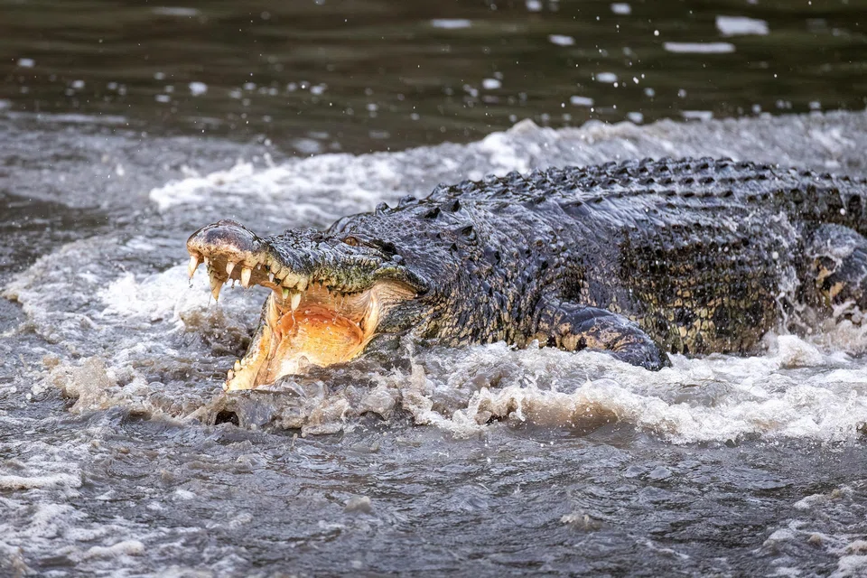 Despite its superior size, the crocodile eventually retreats, slowly backing away from the group and disappearing into the murky waters, leaving the victorious semi-aquatic animals free to roam the area.