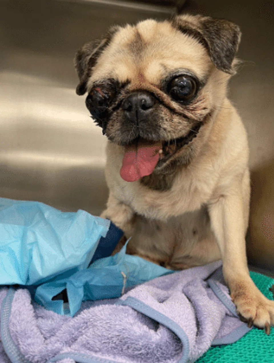 Upon arriving at the vet, she was told that Rudy's cornea had been damaged, with her eyeball popped out. After seeking advice from two other vets, she decided to have the injured eye removed.