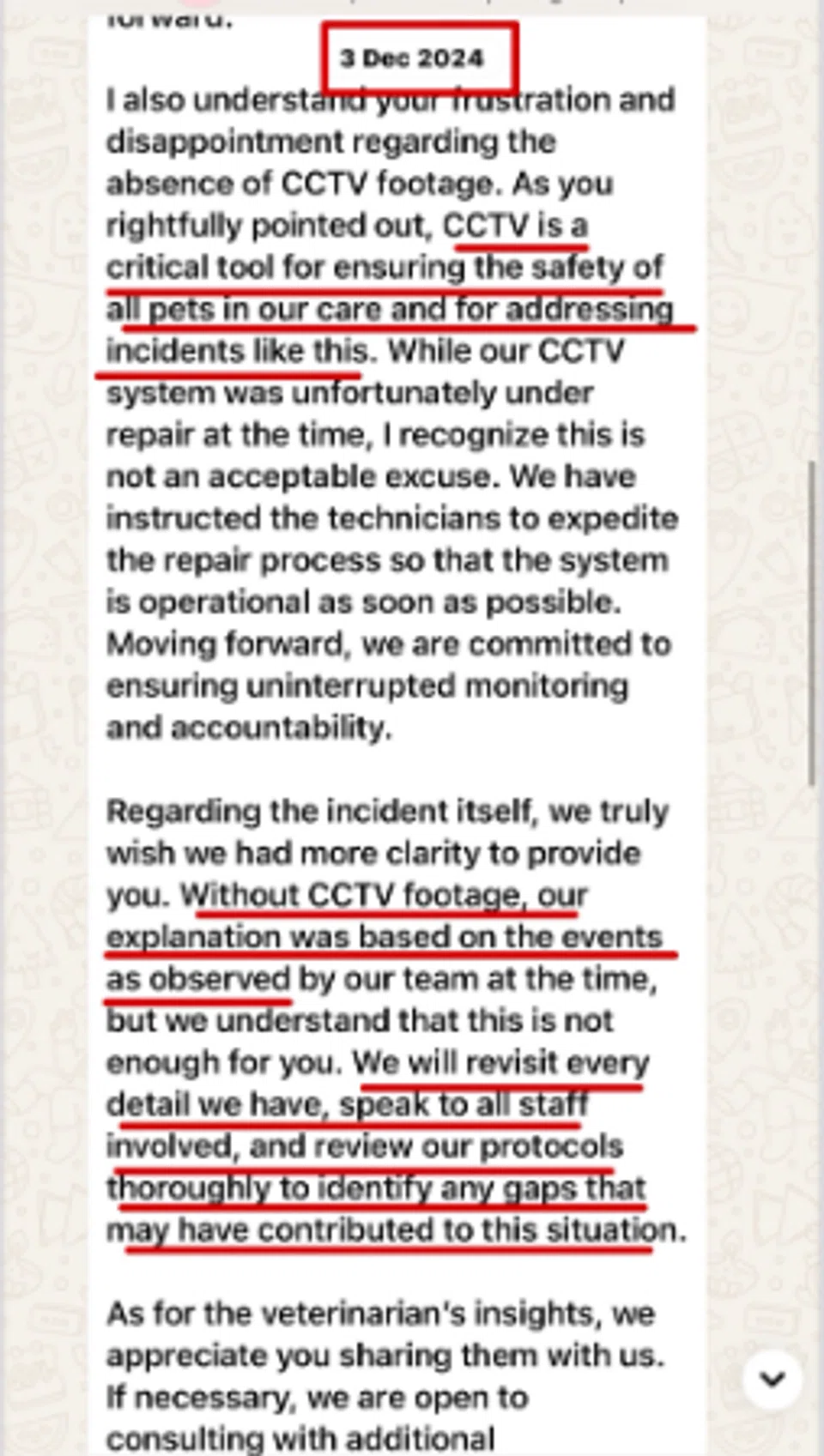 Ms Chow questioned why Pawsome was unable to provide footage of the incident.