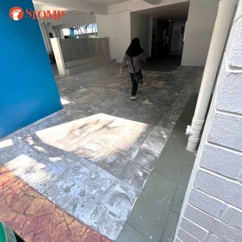 When Stomp visited Block 692A on July 19, all the dislodged tiles had been removed but not yet replaced.