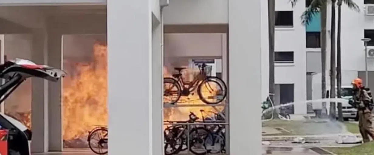 According to Shin Min Daily News, a video taken by a nearby onlooker showed that the fire broke out at the loading area below the HDB block.