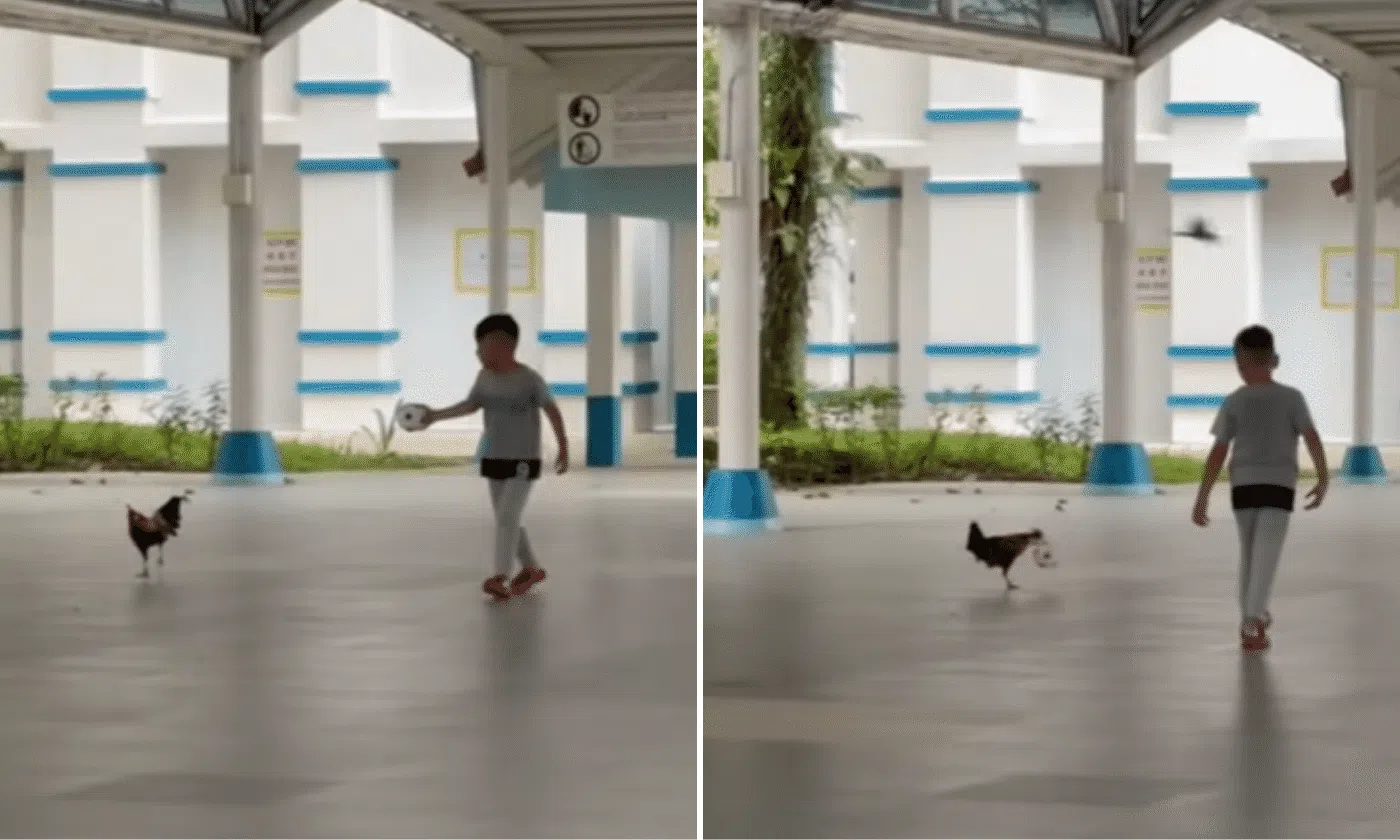A boy was captured on video playing football with a rooster in an outdoor pavilion beside a Woodlands HDB block, delighting netizens who were captivated by the wholesome scene.