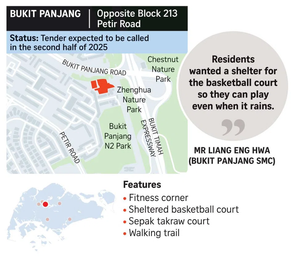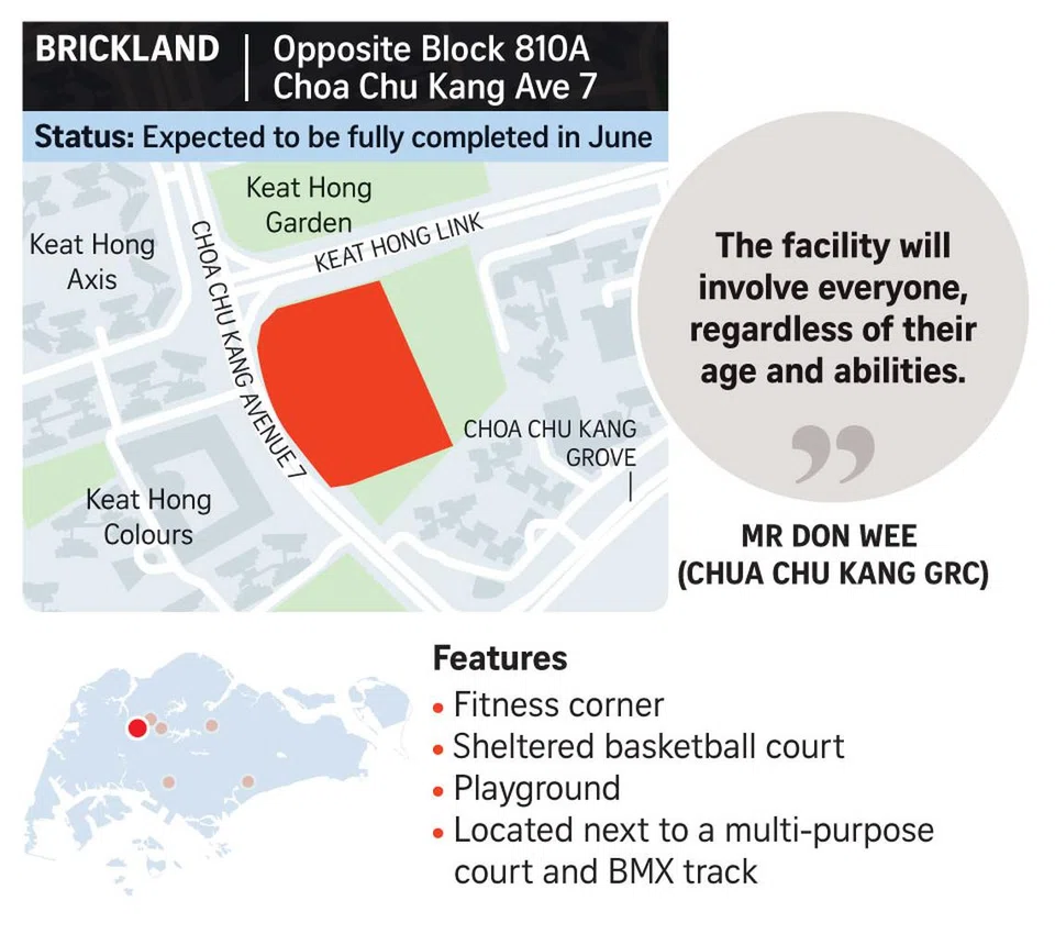 Among the SIP projects that will open in 2025 is one in Choa Chu Kang Avenue 7 that includes a sheltered basketball court, fitness corner and playground.