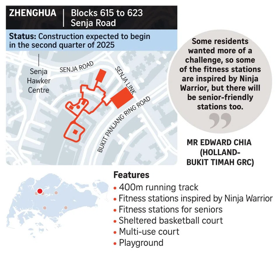 Meanwhile, residents in Zhenghua will get a 400m running track that snakes between blocks 615 and 623 in Senja Road, where a new SIP facility will be built.