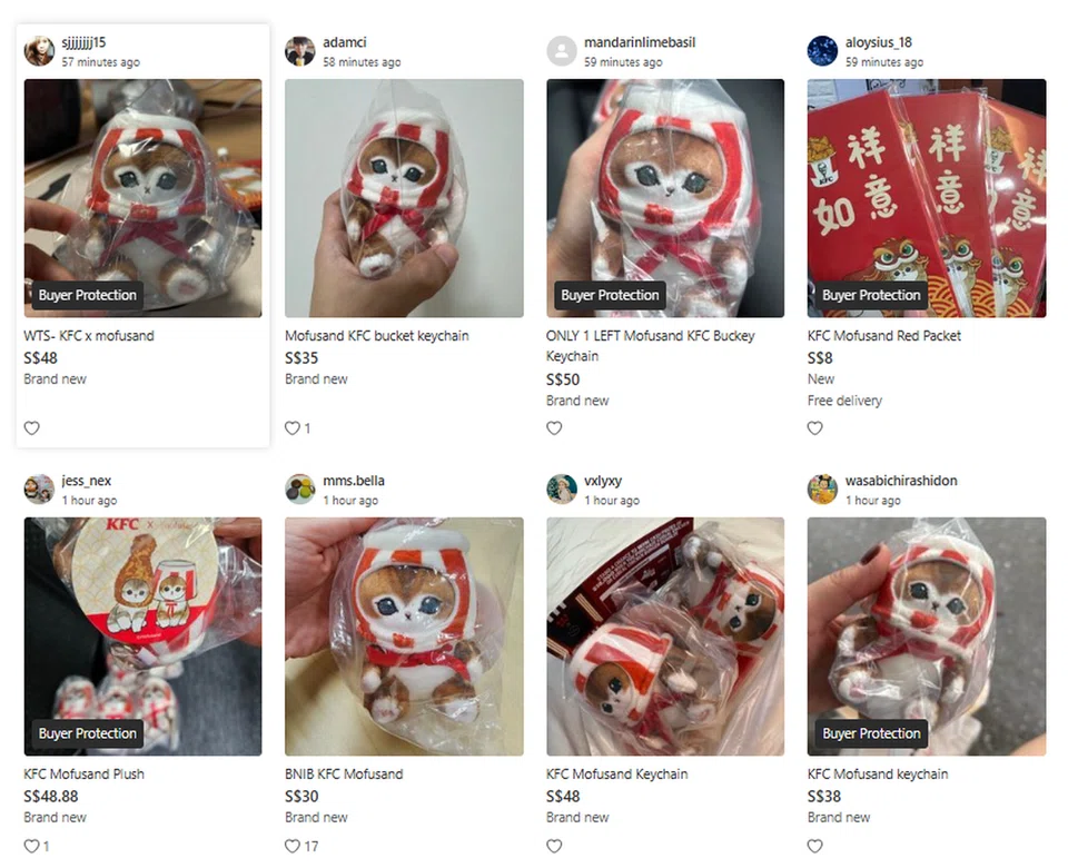 Scalpers sell KFC's Mofusand keychains at $50 on Carousell