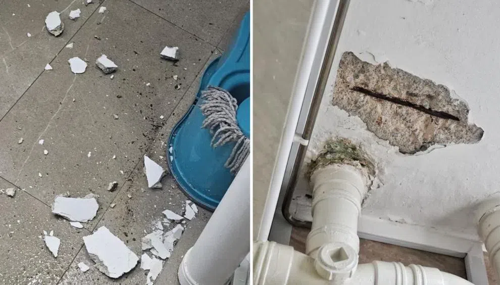Spalling concrete in an HDB flat in Toa Payoh nearly hit a resident while she was in the bathroom, causing paranoia among the family members.
