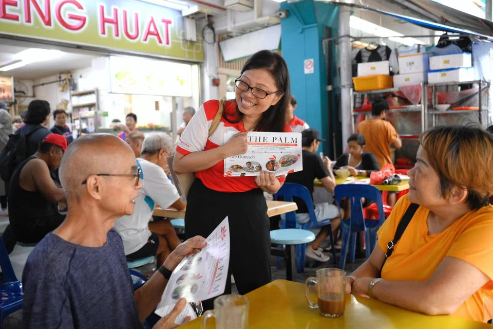 Dr Tan and other PSP leaders and volunteers walked around Keat Hong Food Centre and Market, speaking to residents and handing out their newsletter, The Palm.